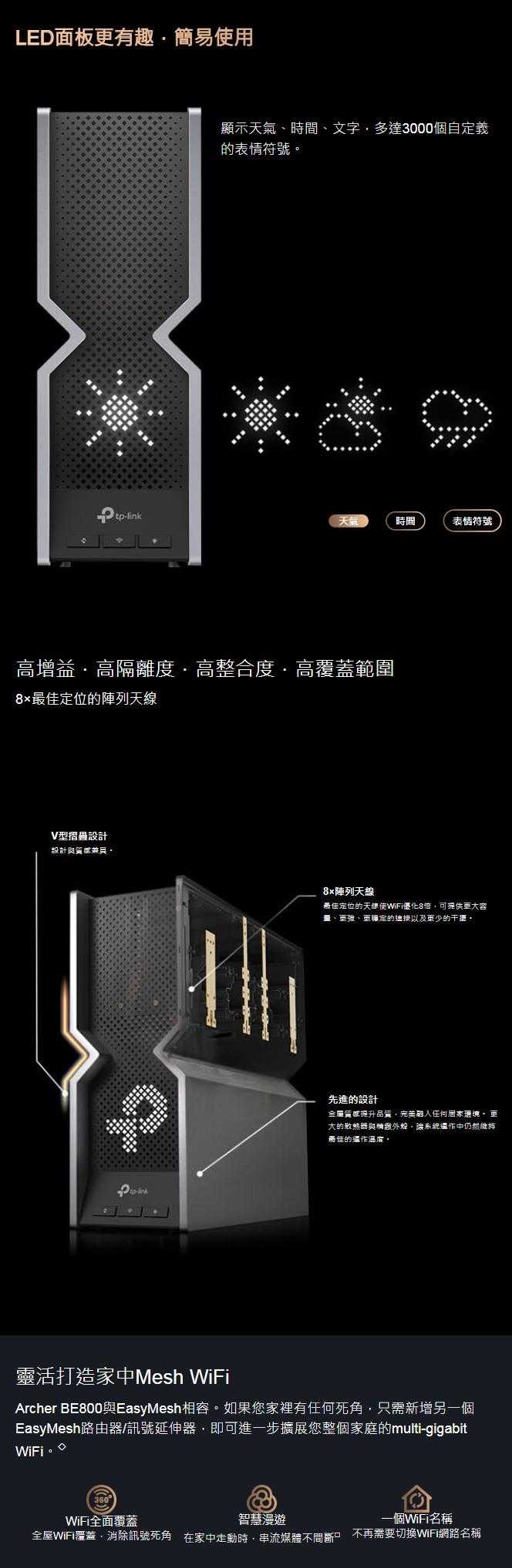 • 重新定義WiFi路由器:強大的WiFi 7效能、閃電般的有線連接、全新的設計和LED顯示螢幕