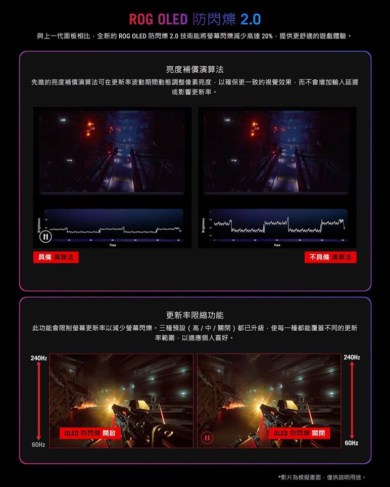 - 全新 OLED 防閃爍 2.0 技術包含全新的亮度補償演算法,與前一代面板相比,可減少 20% 的閃爍,確保更舒適的觀看體驗