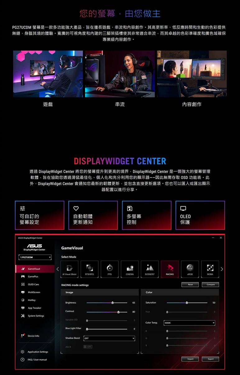 - ASUS DisplayWidget Center 可讓使用者透過滑鼠輕鬆調整 OLED Care Pro 功能和螢幕的各項設定