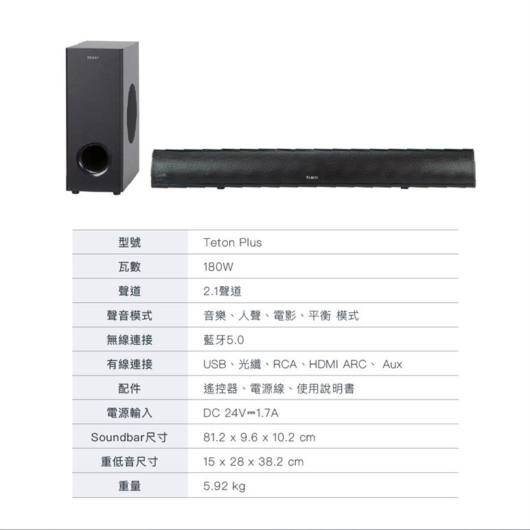 Teton Plus家庭劇院藍牙喇叭Soundbar