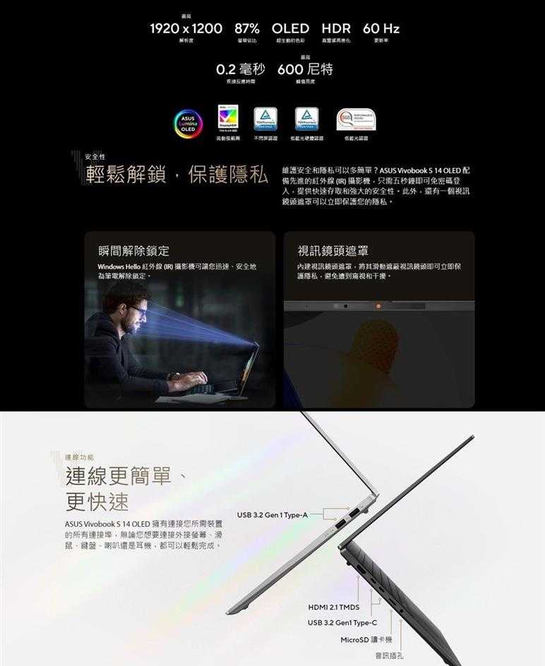 - 攝影機:FHD camera with IR function to support Windows Hello;With privacy shutter
