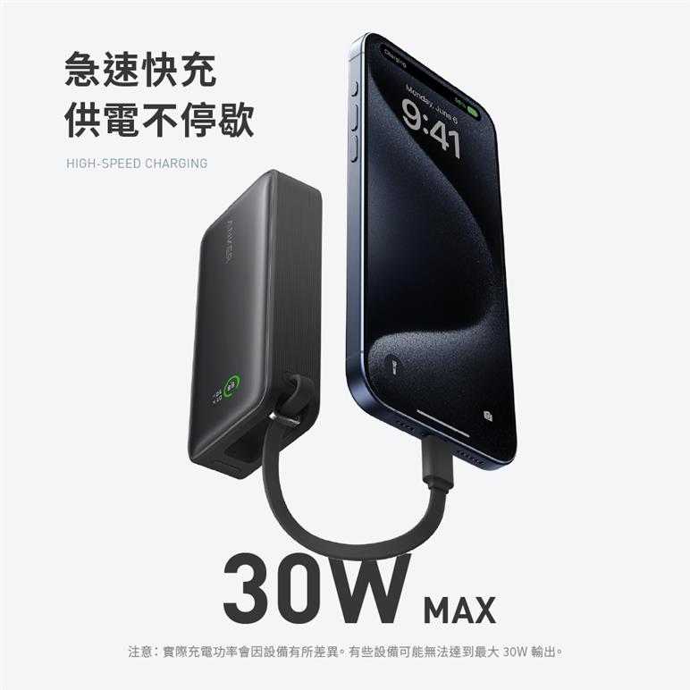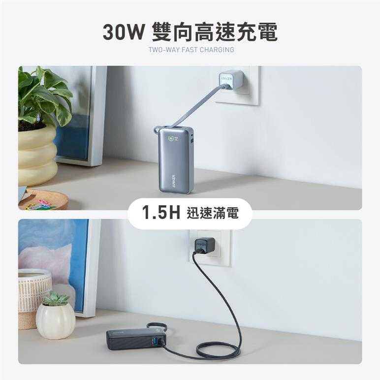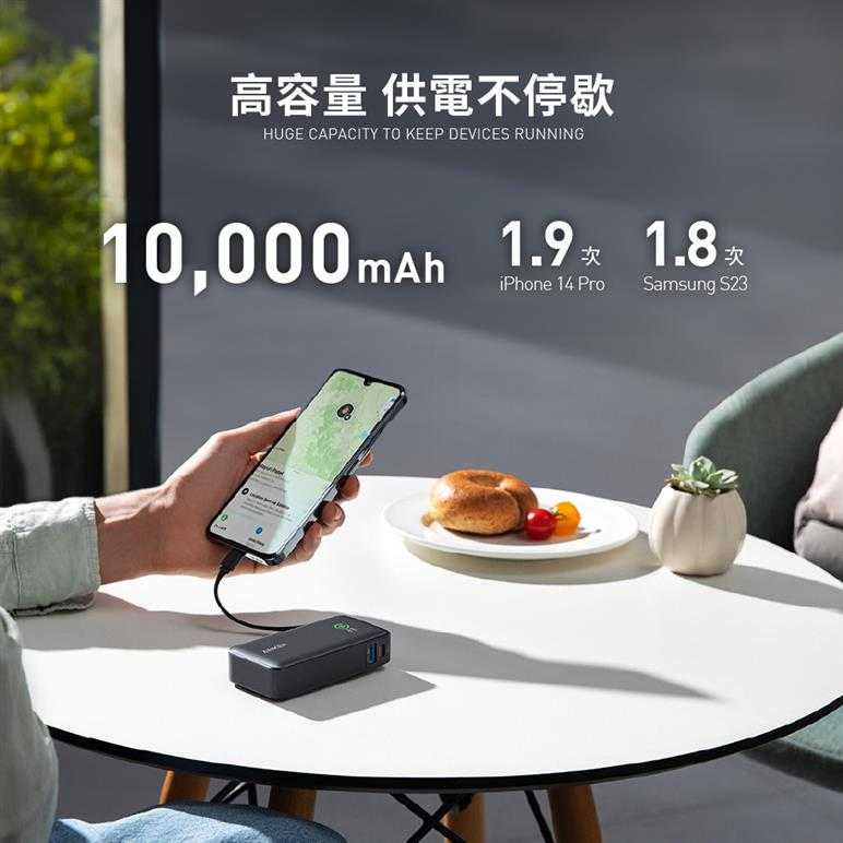 使用自帶USB-C線實現雙向快充。只需30分鐘內將iPhone 14充電至50%,或在45分鐘即可將行動電源充電至50%