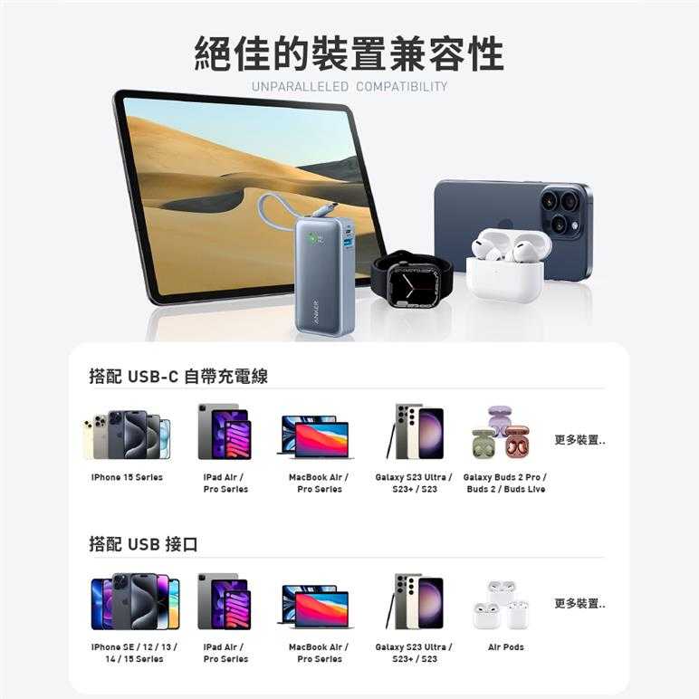 輸 出 口 數:USB-A x1 / USB-C x 1 / USB-C自帶線
