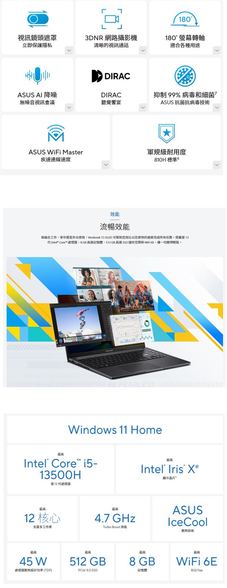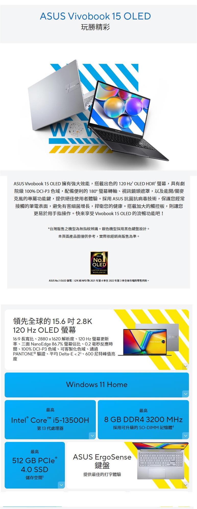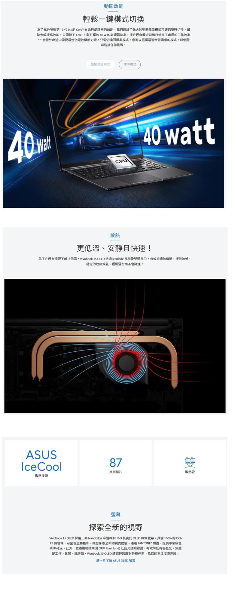 | 螢幕尺寸 | 15.6 吋 FHD (1920 x 1080) OLED 16:9 aspect ratio, 60Hz refresh rate, Glossy display, Non-touch screen |