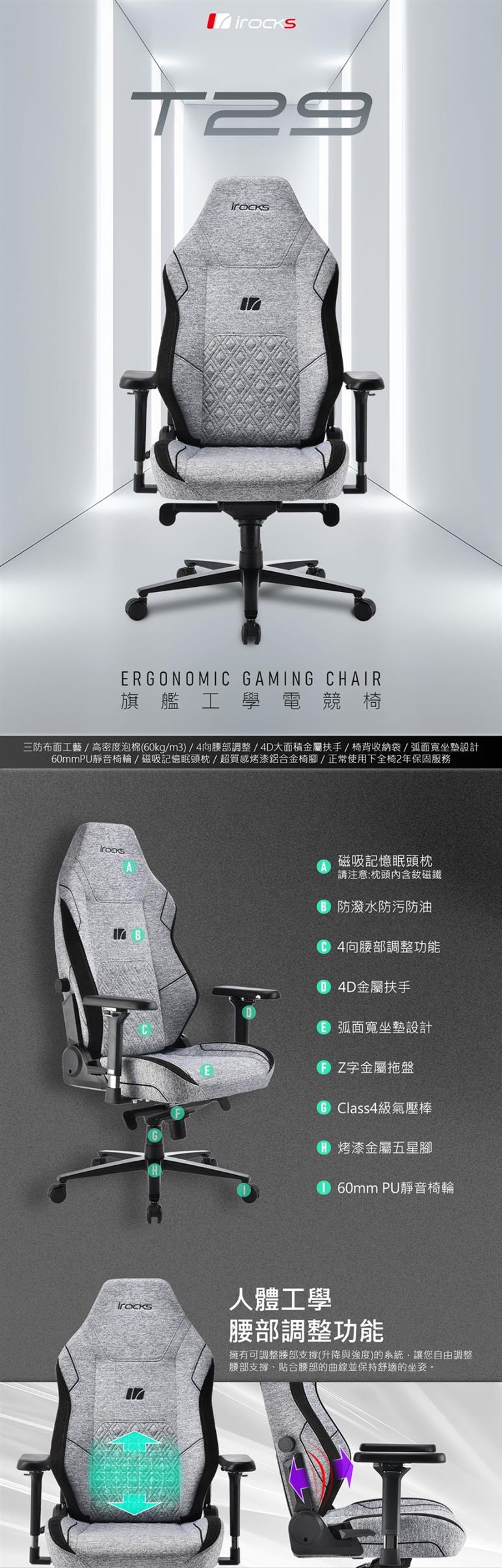 ●4向人體工學腰部調整系統,更能貼合身型提供腰部支撐