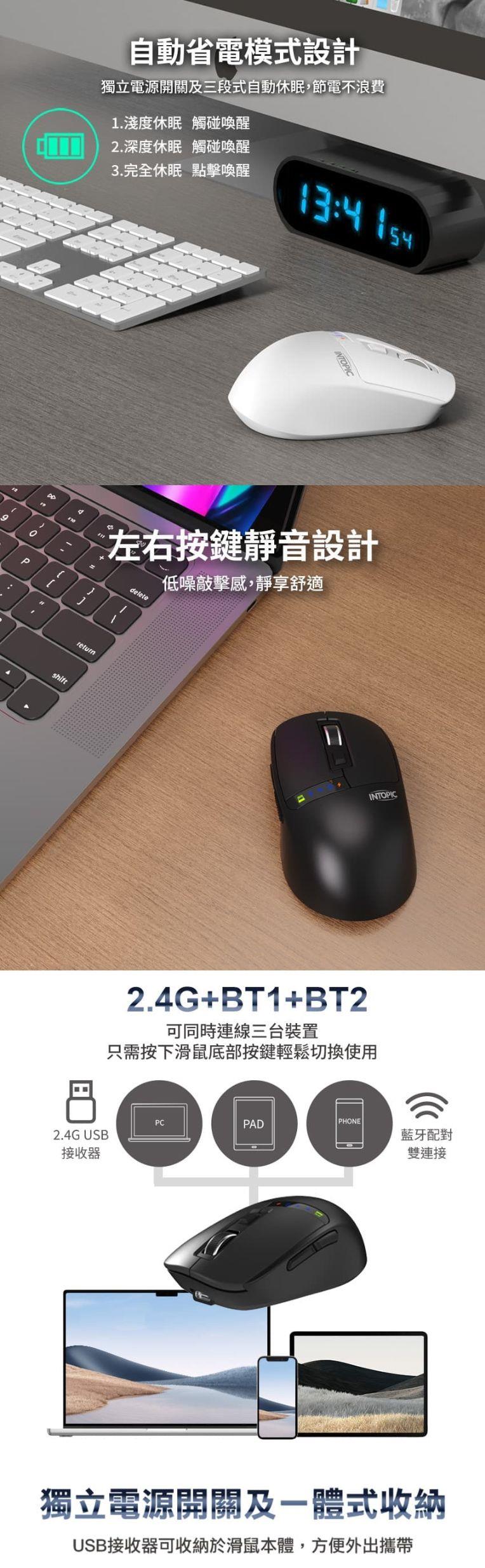 ●三通道(2.4G+BT1+BT2 連線)同時連線三台裝置