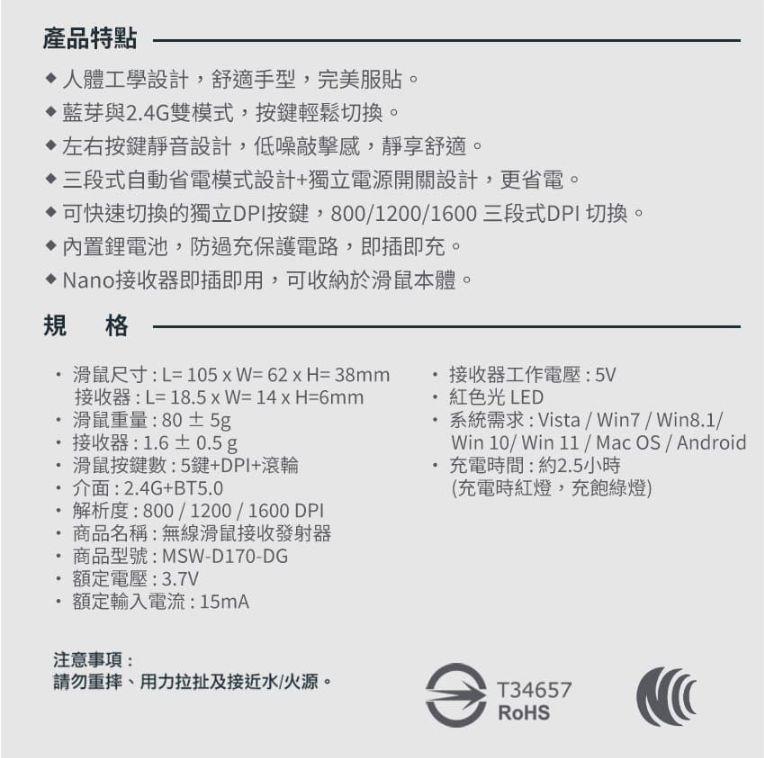 ●獨立DPI按鍵 800/1200/1600 三段可切換