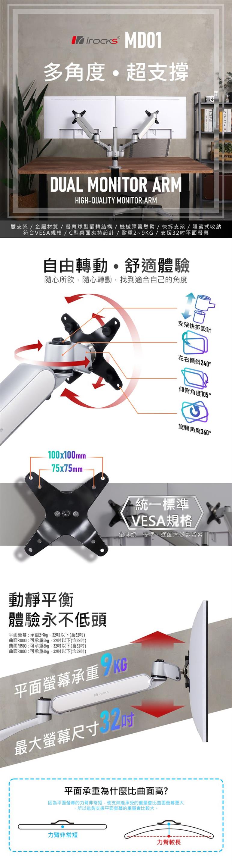 ●標準VESA 75x75與100x100孔距,適用於市面大多數螢幕