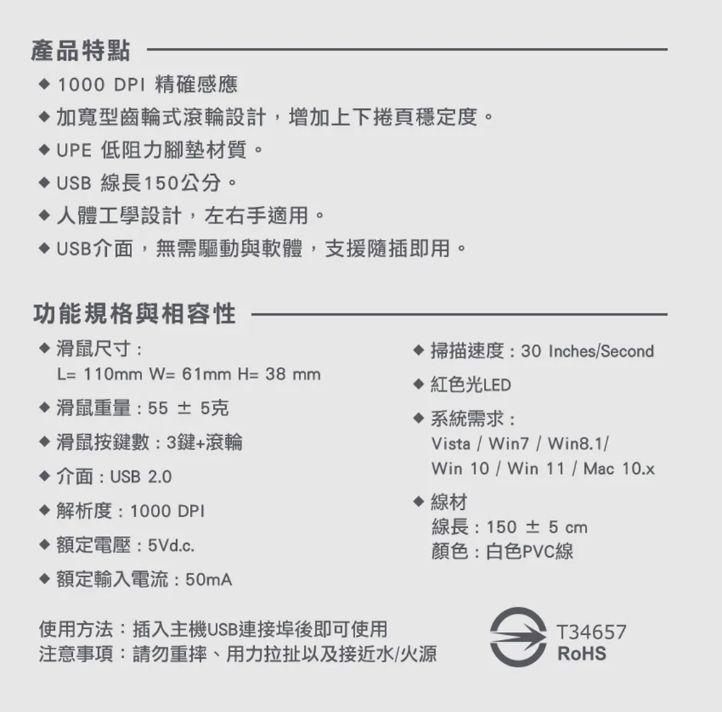 ●USB介面, 無需驅動與軟體,支援隨插即用