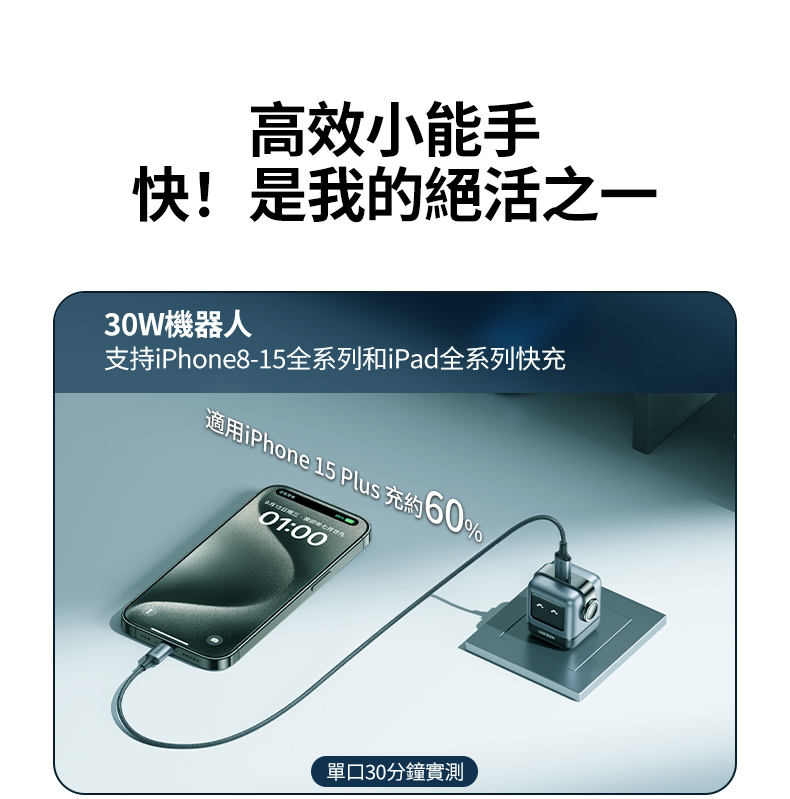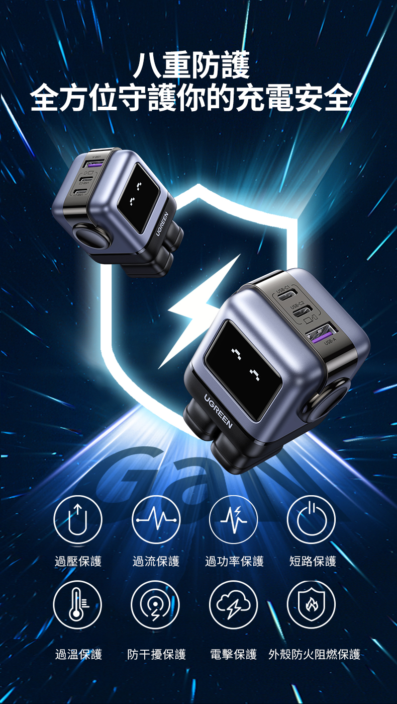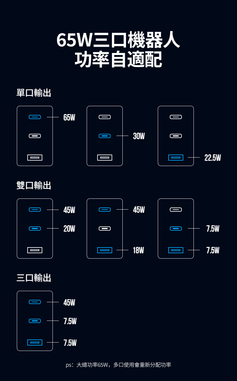 .三孔設計:2C1A,三種設備同時充,效率加倍