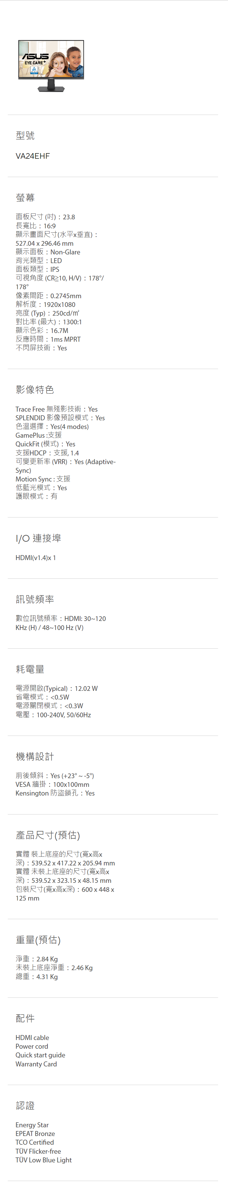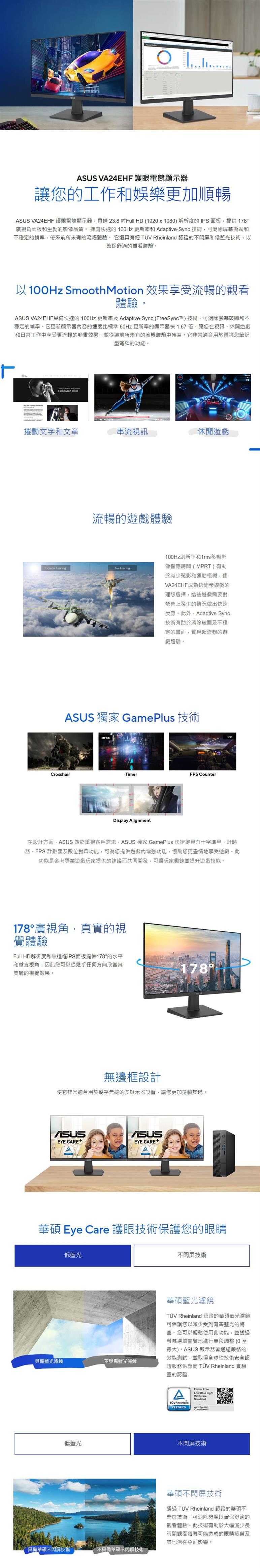● ASUS Eye Care 顯示器採用 TUV Rheinland 認證的不閃屏和低藍光技術