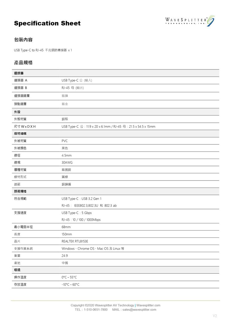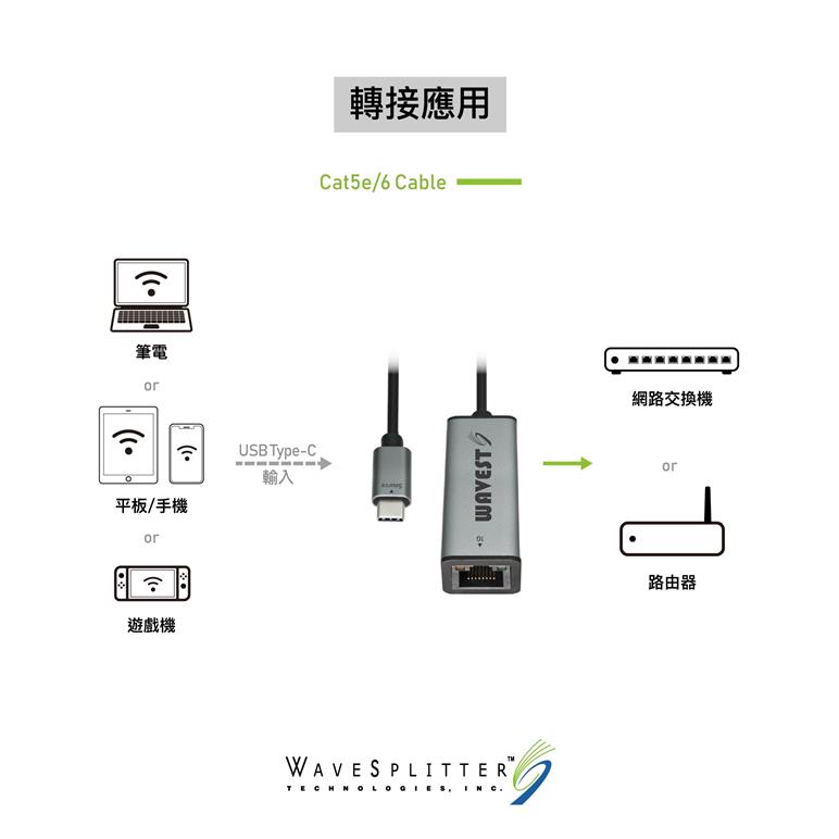 本產品可將可將電腦、手機、平板、遊戲機等設備的USB Type-C埠轉換成RJ-45網路埠,讓您能夠輕鬆連接有線網路,有效解決設備沒有RJ-45網路埠的問題及Wi-Fi訊號不穩定的問題,提供更快速及更穩定的網路傳輸速度。