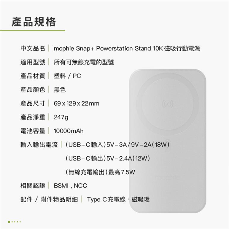- 卓越品質|mophie 的產品均符合國際標準,經過嚴格的品管與多次測試,為用戶提供更安全的充電體驗