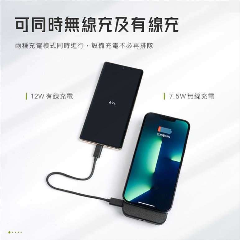 - 10000mAh|支援無線磁吸7.5W + USB-C 12W充電