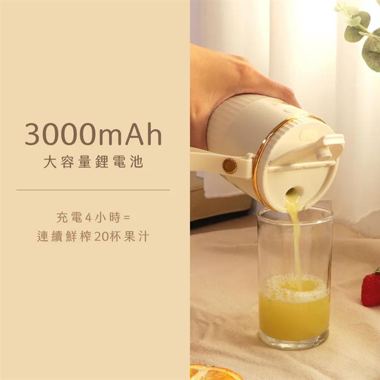 ● 大容量鋰電池1500mAhx2,充電4小時,連續鮮榨20杯果汁