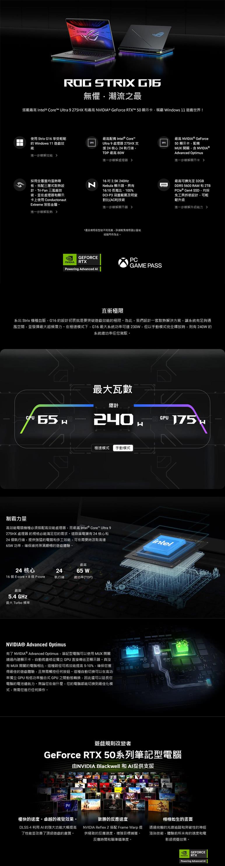 | 螢幕尺吋 | 16吋 16:10(薄邊框) / 2.5K (2560 x 1600, WQXGA) 16:10 / 240Hz / IPS-level |
