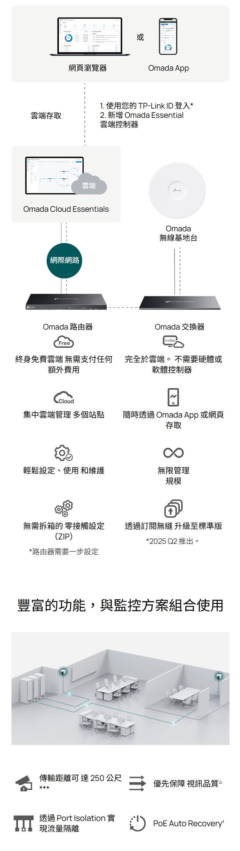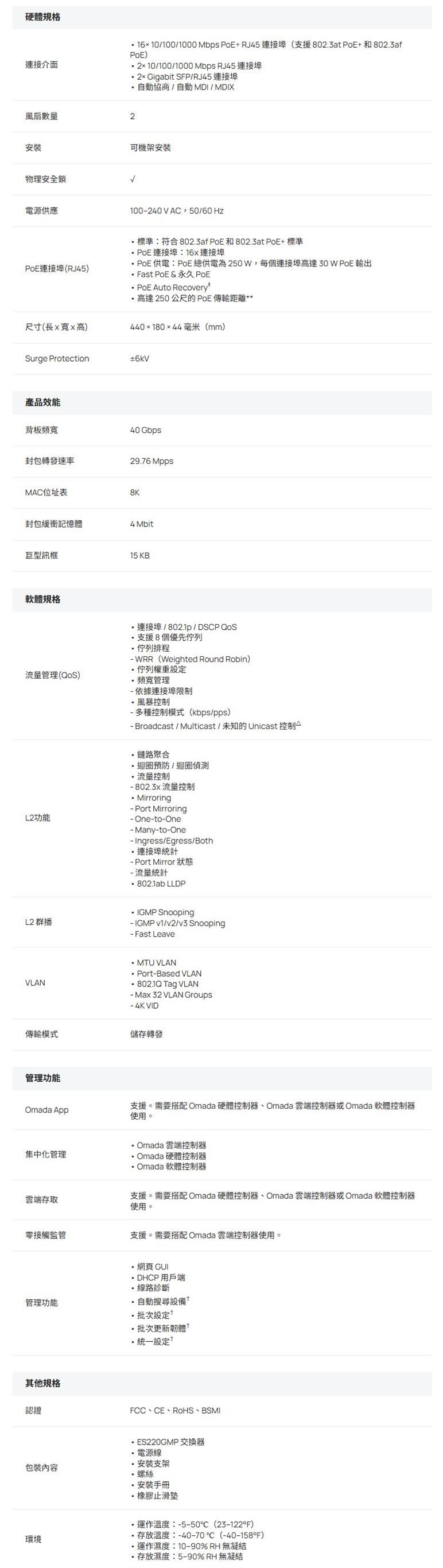 ●高達 250m PoE、QoS、PoE Auto Recovery以及 Port Isolation,達到更可靠的網路監控