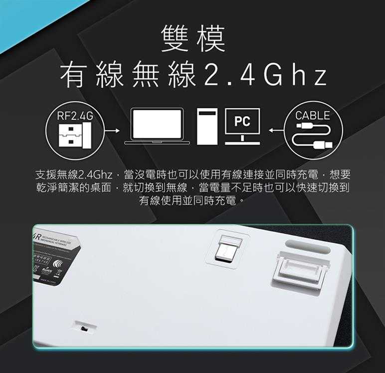 雙模介面: 有線: USB & 無線: 2.4GHz
