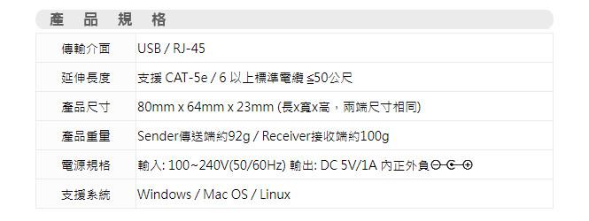 ● 利用網路線,可以代替USB線長距離傳輸