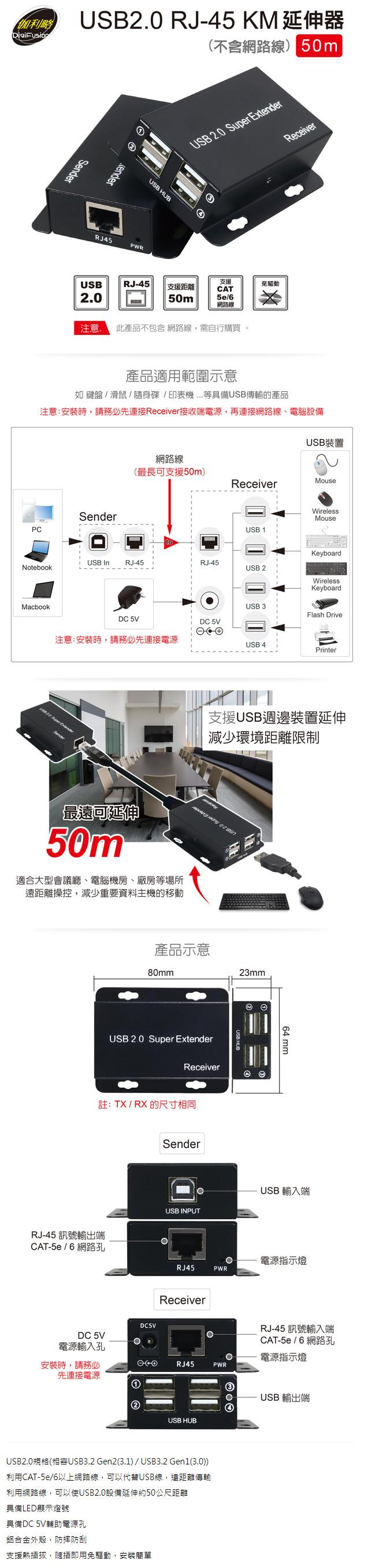 ● 利用網路線,可以使USB2.0設備延伸約50公尺距離