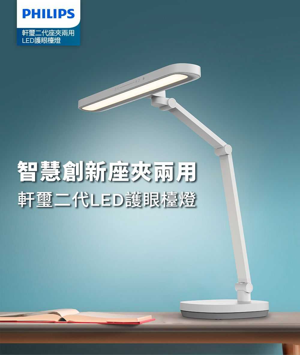 Philips飛利浦 66251 軒璽二代座夾兩用智慧全光譜護眼檯燈 PD060