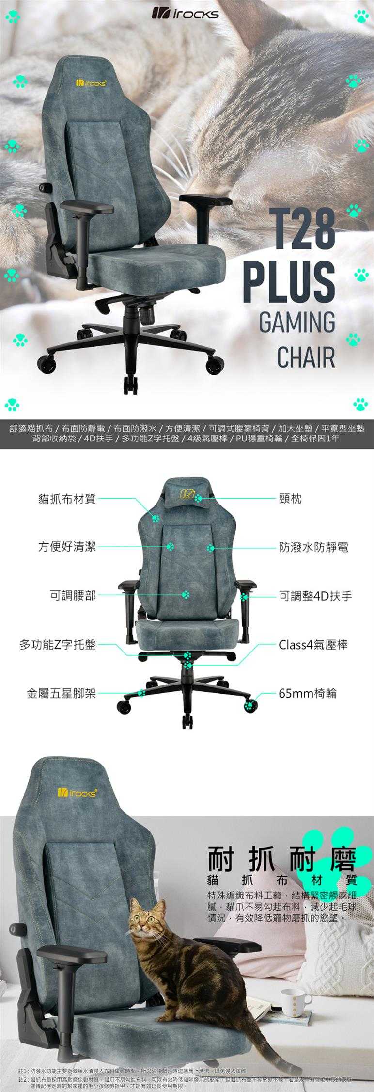 【i-Rocks 艾芮克 T28 Plus 貓抓布布面電腦椅】特色