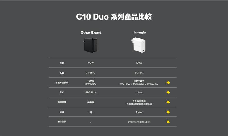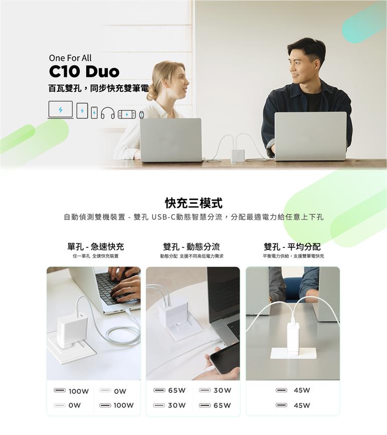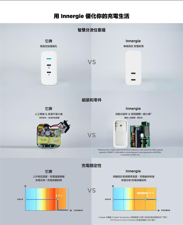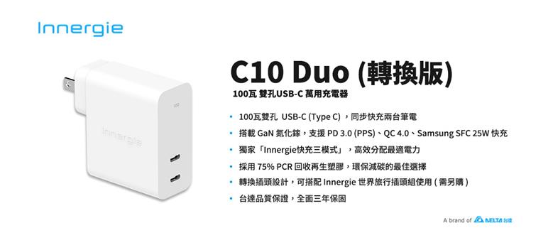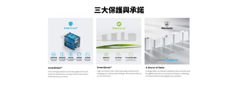 - 獨家Innergie快充三模式|支援雙筆電同時快充,USB-C智慧動態分流!