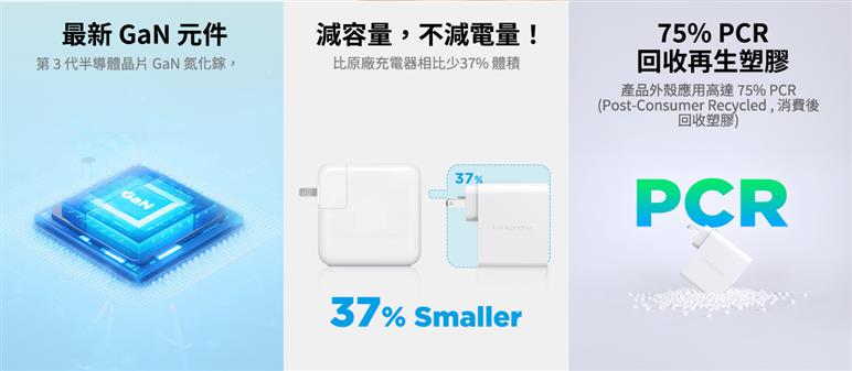 - 輕巧體積|減容量,不減電量!比原廠充電器少37%體積