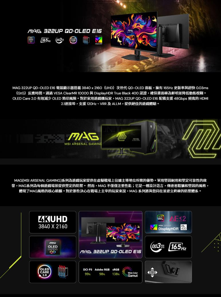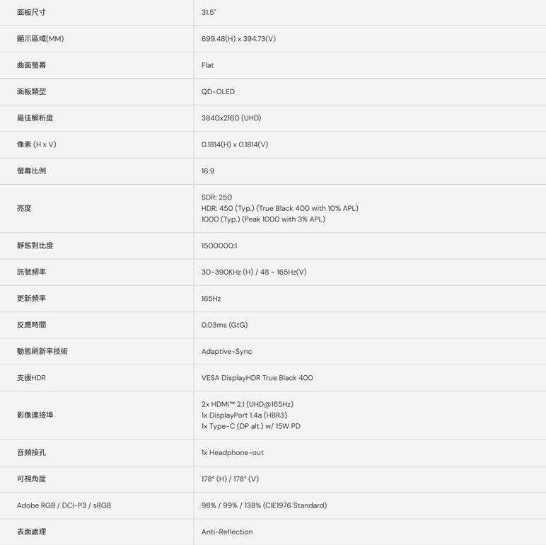 ● 亮度:SDR: 250, HDR: 450 (Typ.)