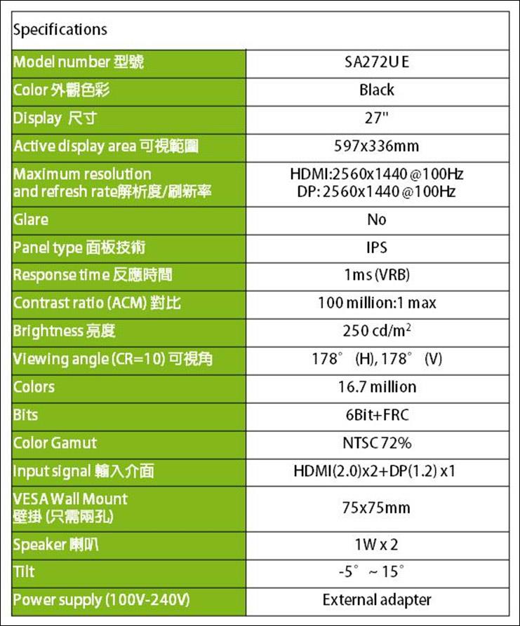 ● 最佳解析度:2560x1440 (WQHD)