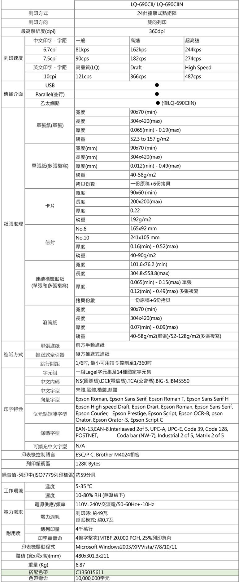 印字頭壽命4億擊針,總列印量4000萬行英文/中文每秒487/244字元,中文操作面板使用更方便