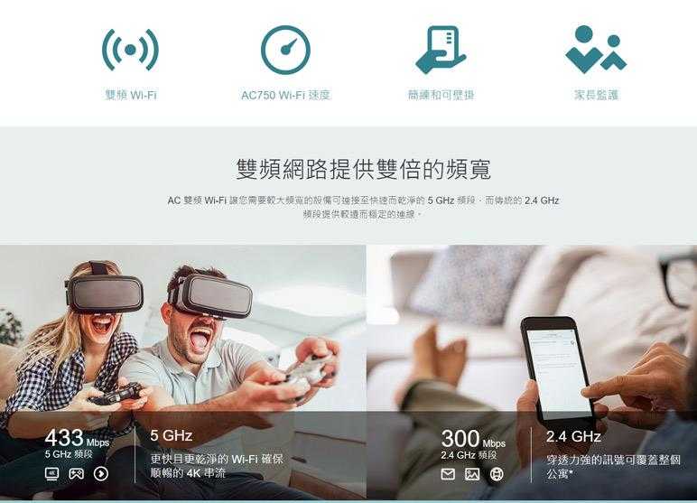 - 高速 Wi-Fi - 750 Mbps 無線傳輸速率適合大頻寬和基本的網路使用。