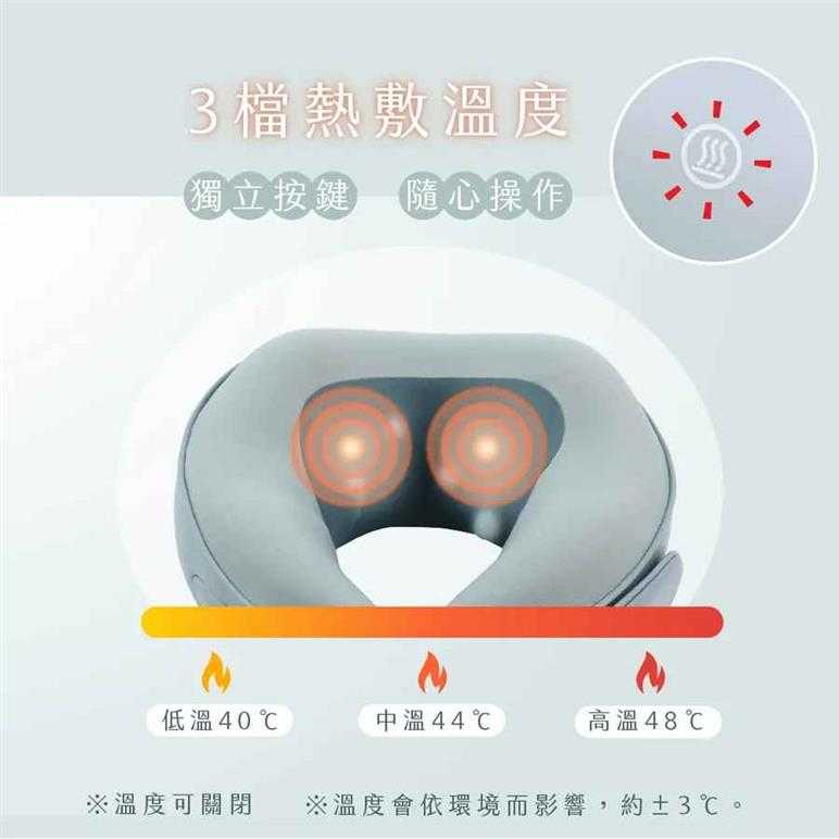 ● 3檔熱敷舒緩,低溫40℃ / 中溫44℃ / 高溫48℃ (±4℃)