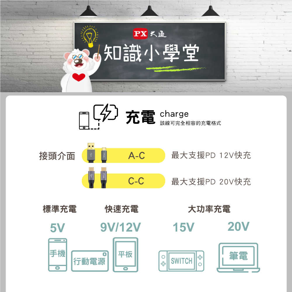 .支援快充規格:9V / 12V / 15V / 20V