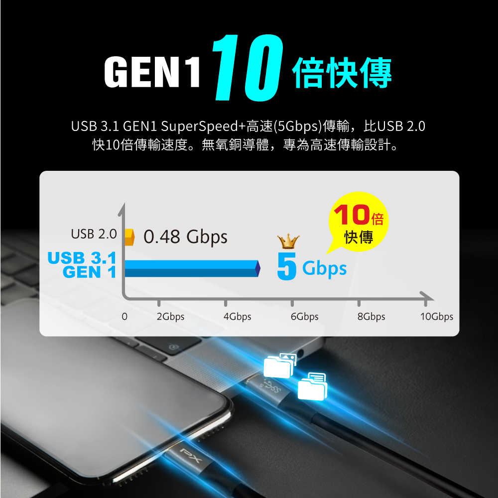 .USB 3.1 GEN1 SuperSpeed+高速(5Gbps)傳輸