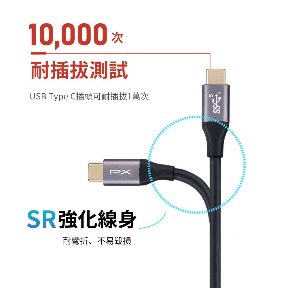 .耐插拔(TYPE C接頭高達10000次)