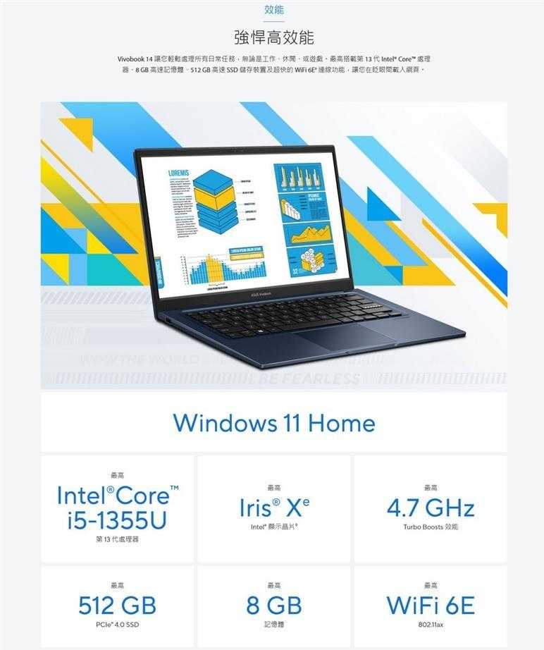處理器:Intel® Core™ i5-1335U 10核心/12緒 3.4GHz 超頻 4.6GHz / 12 M Cache