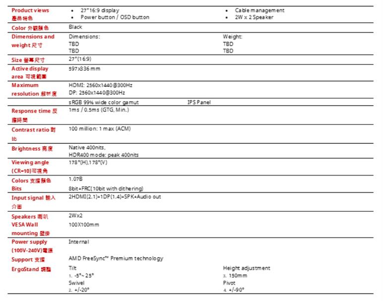 ● 反應時間:1ms/0.5ms(GTG, min.)