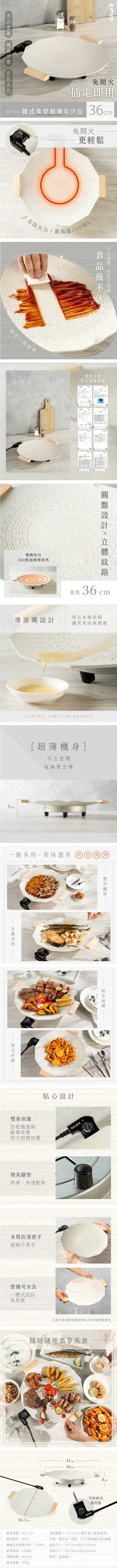 ● 36cm圓形烤盤,家庭聚餐首選,可進行多種料理
