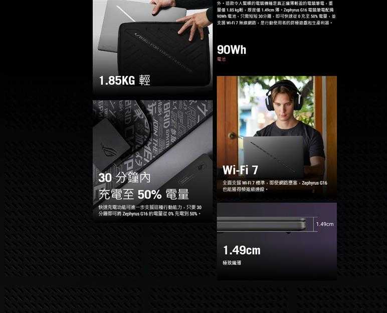重量:1.85 Kg / 藍牙5.4 / Wi-Fi 7 / FHD視訊鏡頭 / 人臉辨識 / 單區RGB背光鍵盤 / SD讀卡機 / HDMI 2.1 FRL