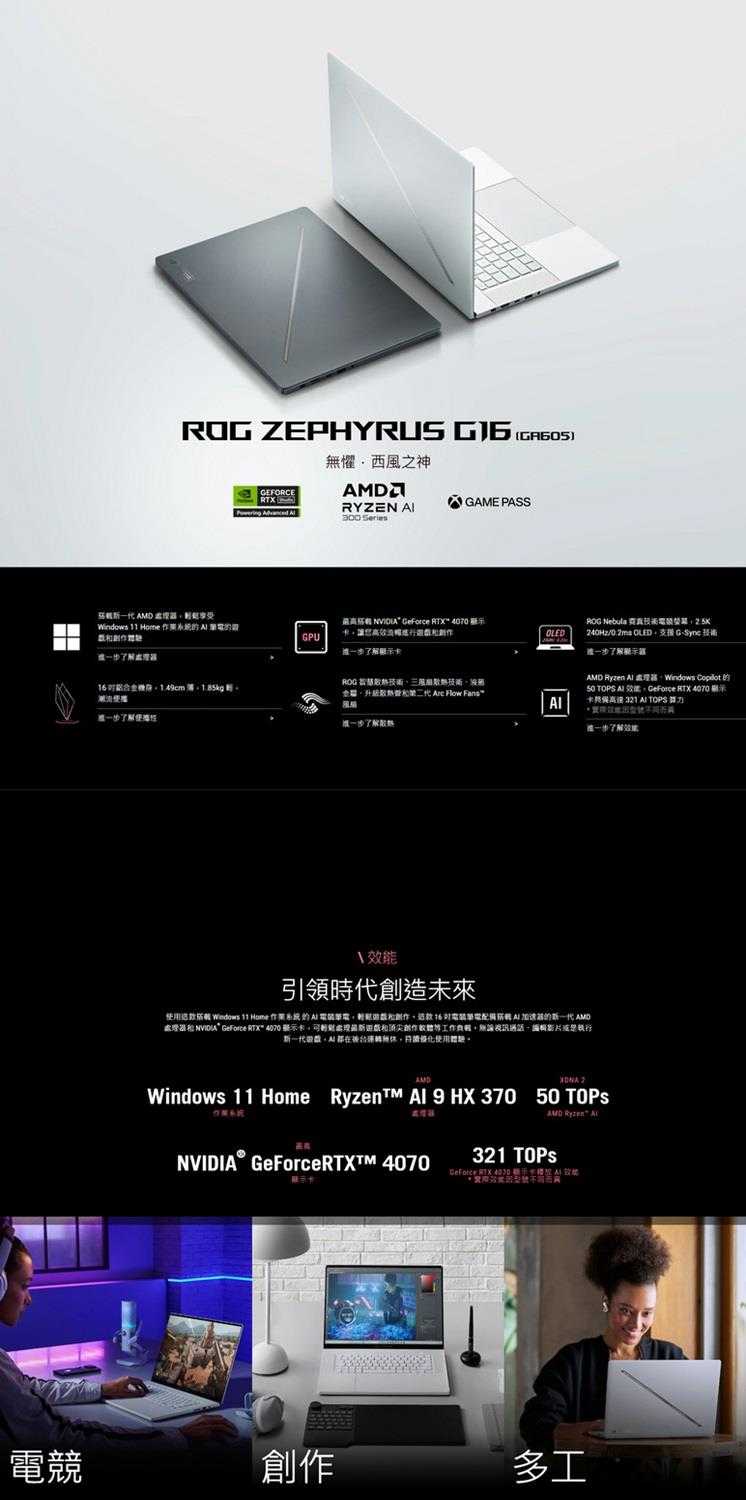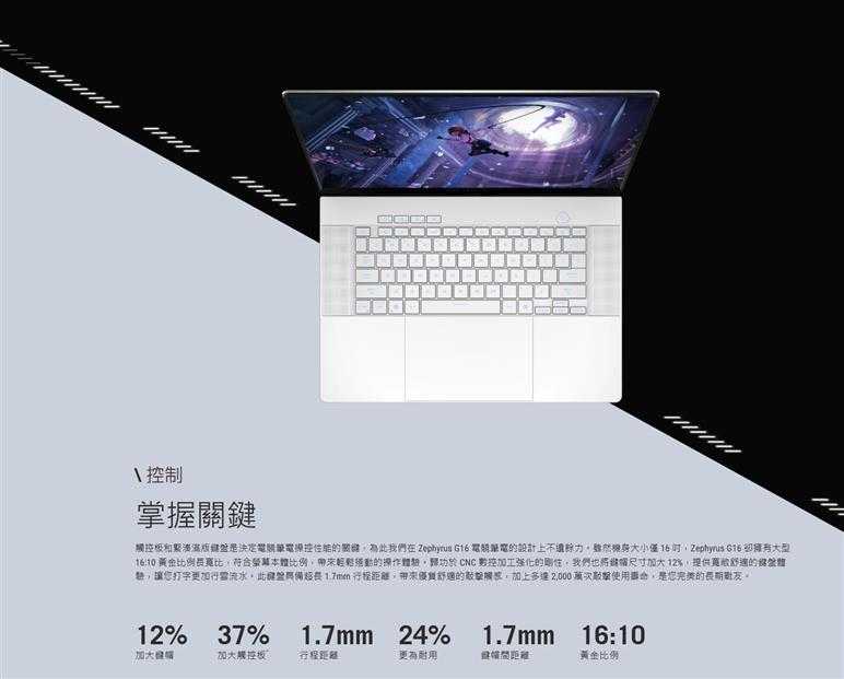 尺寸:16" ROG Nebula Display OLED 2.5K (2560x1600) 240Hz / DCI-P3 100% / G-Sync〈16:10〉