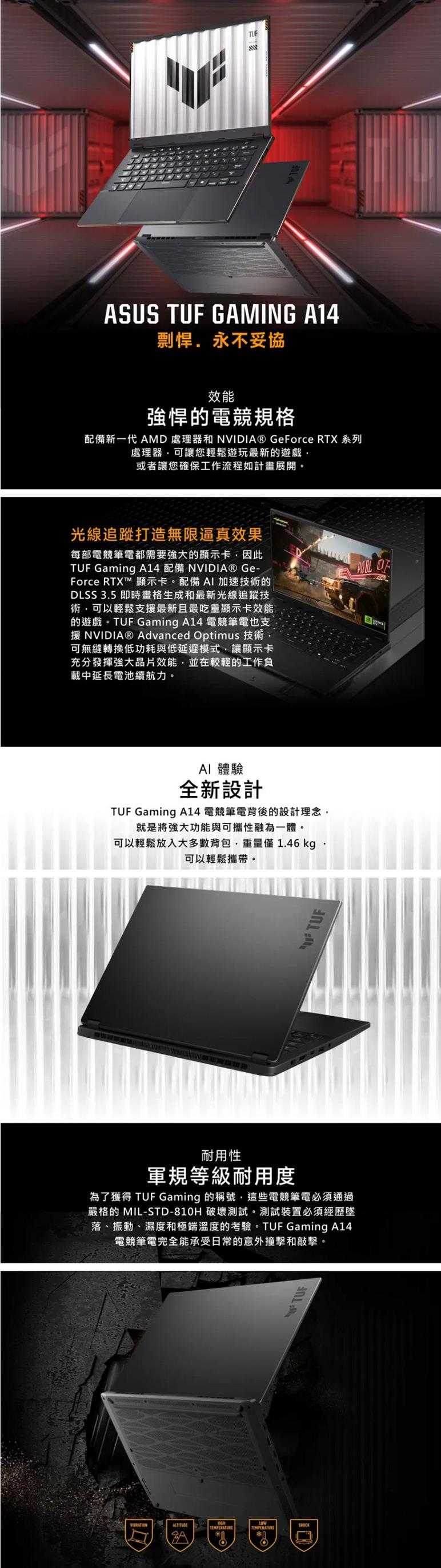 ASUS TUF Gaming A14 FA401UU-0041A8845HS 14吋筆電灰送NB包+腕托+RJ45轉接 {{specImage.SkuName}}