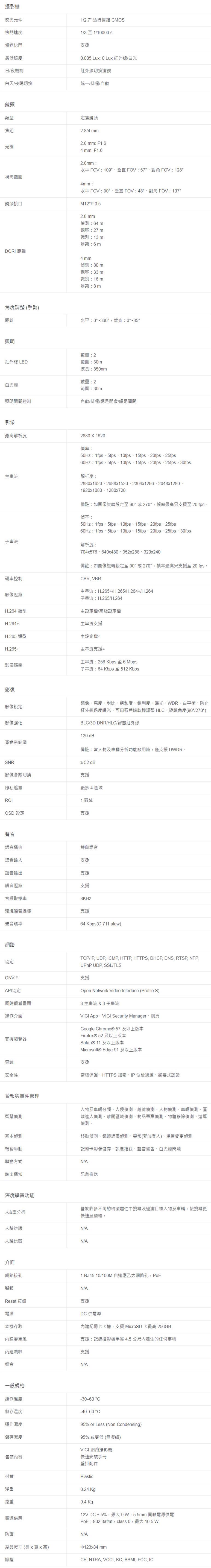 - 5MP 超高解析度:本款攝影機配備了 5MP 解析度,足以捕捉到更細緻的影像。
