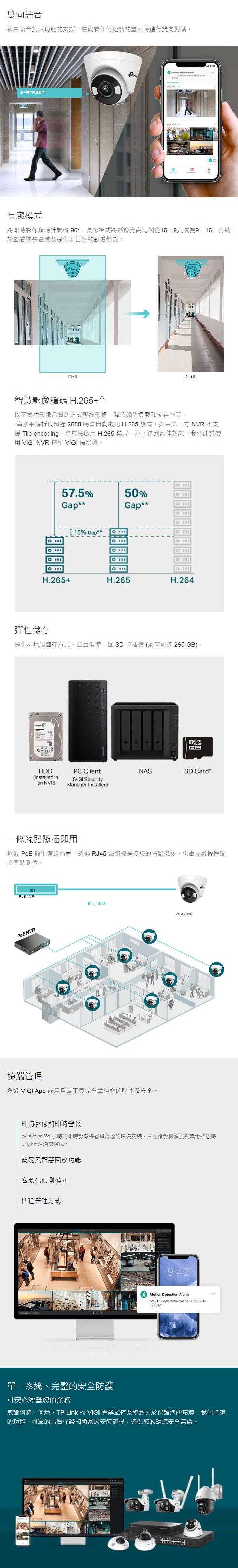 - 智慧影像提升:VIGI 的專業影像處理技術大幅提升了影像的品質,這對於您的監控安全需求十分重要,包含智慧紅外線、真 WDR、3D DNR 和夜視。