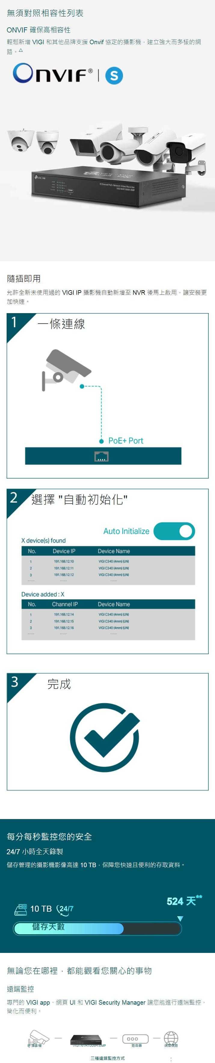 - 隨插即用: 允許新拆封尚未使用的 VIGI 攝影機自動新增至 NVR,讓您接線即使用,體驗前所未有的快速安裝。