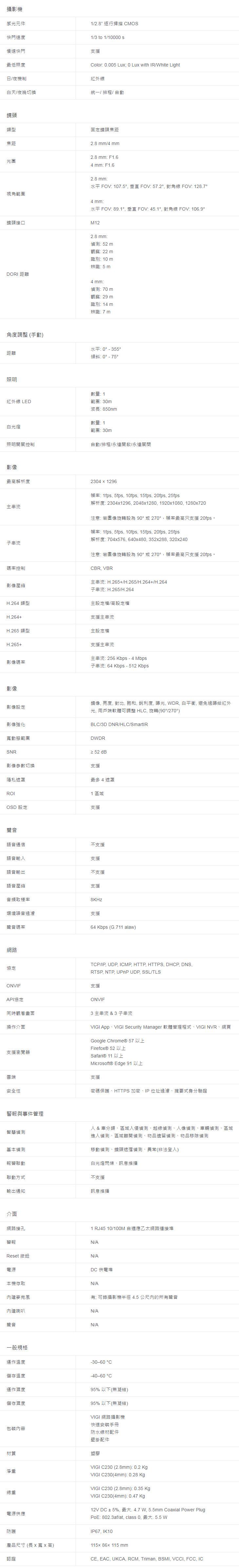 - 3MP 高畫質解析度:攝影機提供 3MP 畫質 - 更多像素提供更清楚的細節。