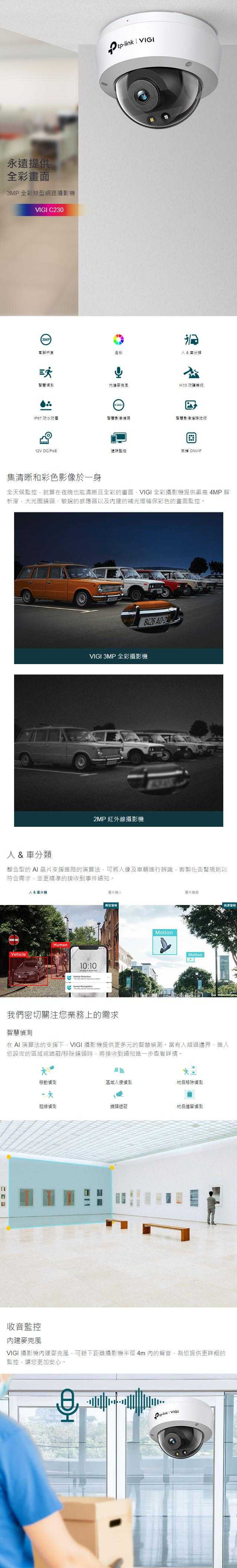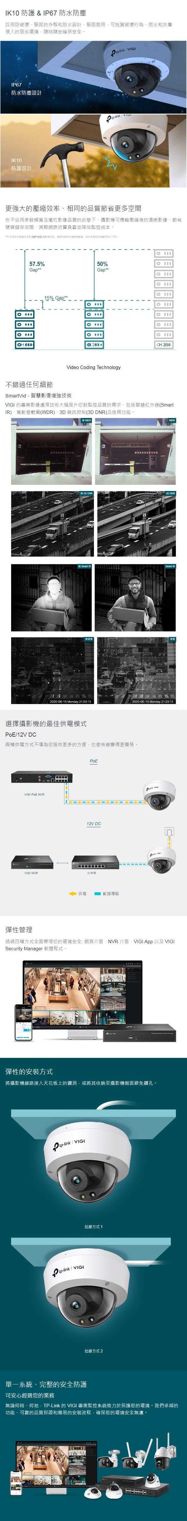 - 智慧影像增強技術:VIGI 的專業影像處理技術大幅提升您對監控品質的需求,包括智慧紅外線(Smart IR)、寬動態範圍(WDR)、3D雜訊抑制(3D DNR)及夜視功能。