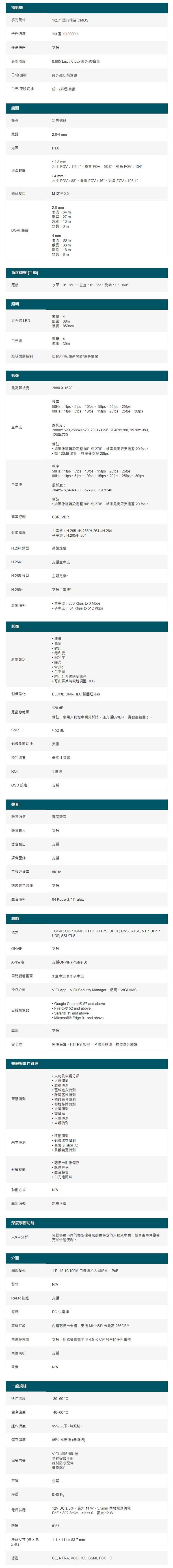 ●5MP 超高畫質和全天候全彩