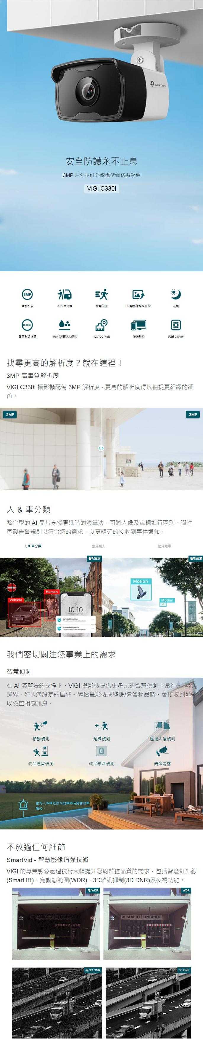 - 3MP 高畫質解析度:VIGI C330I 攝影機配備 3MP 解析度 - 更高的解析度得以捕捉更細緻的細節。