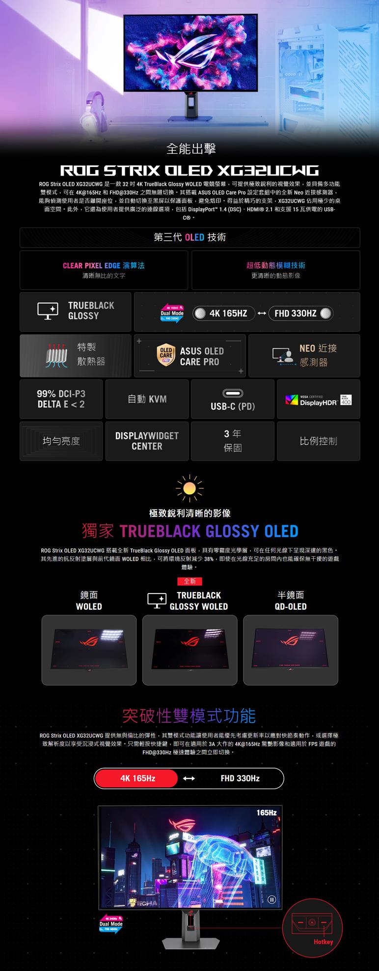 ● 更新頻率:雙模式 4K@165Hz, FHD@330Hz